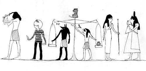この絵はベルって昔から生きててもおかしくないよねって会話から生まれたエジプトの死者の書的な絵です。